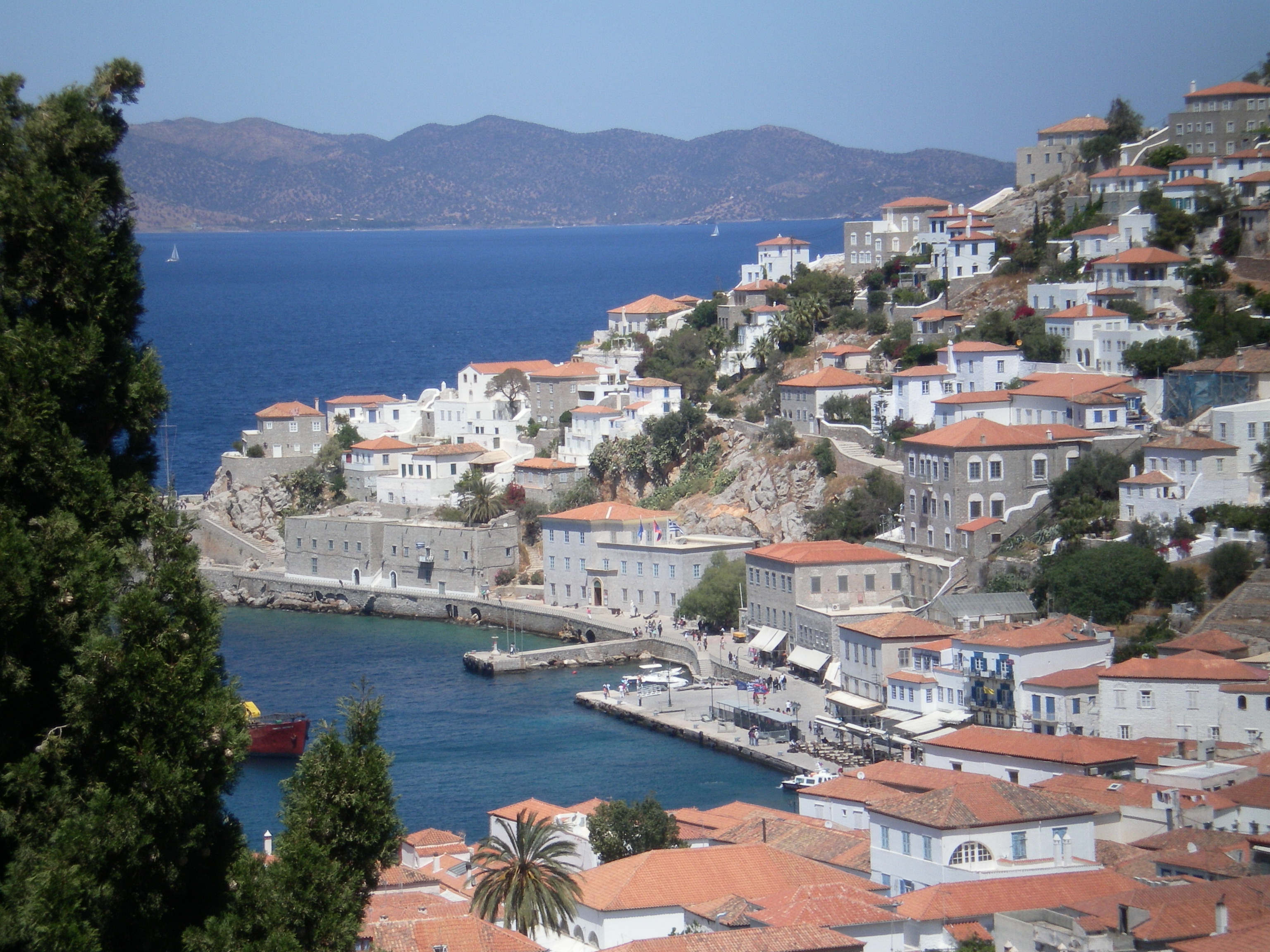 From the hills I came down to walk along the harbour side, passed a fisherman beating a rather large octopus against the wall to tenderise it. Economou Mansion, built in 1851 by the famous Captain Michail Economou – now offering upmarket accommodation. And, in front of the Poseidonion Grand Hotel – the monument to Laskarina Bouboulina – born 11 May 1771, died 22 May 1825 – the Greek heroine of the War of Independence in 1821.